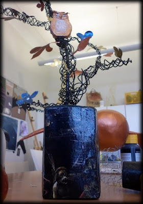 Det var egentligen sista dagen för den här uppgiften. Alla blev väl inte riktigt klara, men nästan. Det kommer att finnas lite extratid under estetveckan som vi ska ha efter påsklovet. En del saker som ska brännas står på torkning andra ska bara ha lite färg och finish. Bosch-skulpturerna ska vi ställa ut mellan första och sjätte juni i Lottastugan här i Varberg. Jag är verkligen jättenöjd med hur eleverna har tagit itu med denna uppgift och med vilka fina resultat det har blivit.